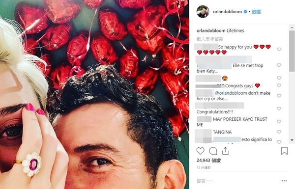 奥兰多布鲁姆和澳洲名模米兰达可儿曾有过6年感情,且结婚后育有一子,可惜婚姻仅维持3年,最后仍告吹。直到2016年1月,他和凯蒂佩里展开新恋情,轰动欧美娱乐圈,虽然隔年一度分手,但事后又被拍到约会看演唱会,如今终于宣布订婚,获得不少粉丝祝福。
