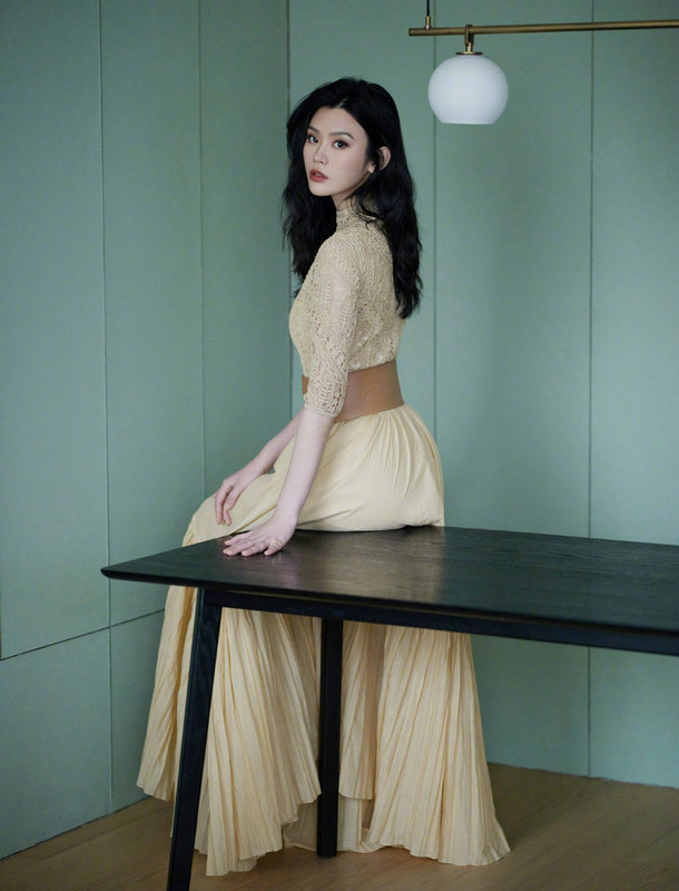 奚梦瑶穿蕾丝裙配腰封 眼神妩媚显超模气场