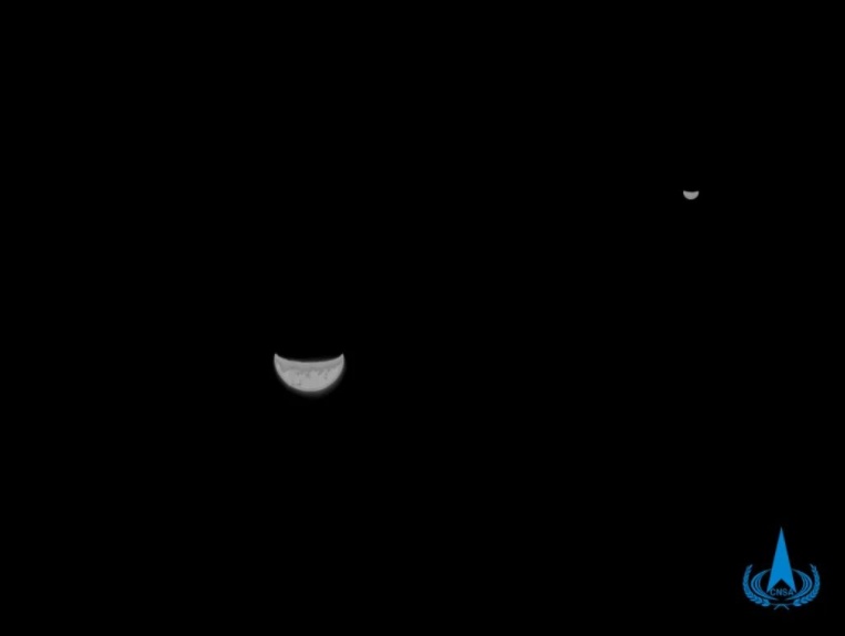 “天问一号”任务探测器传回地月合影