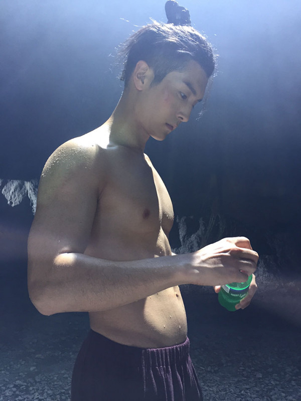 大汗涔涔!盛一伦横店桑拿天拍戏像遭水洗