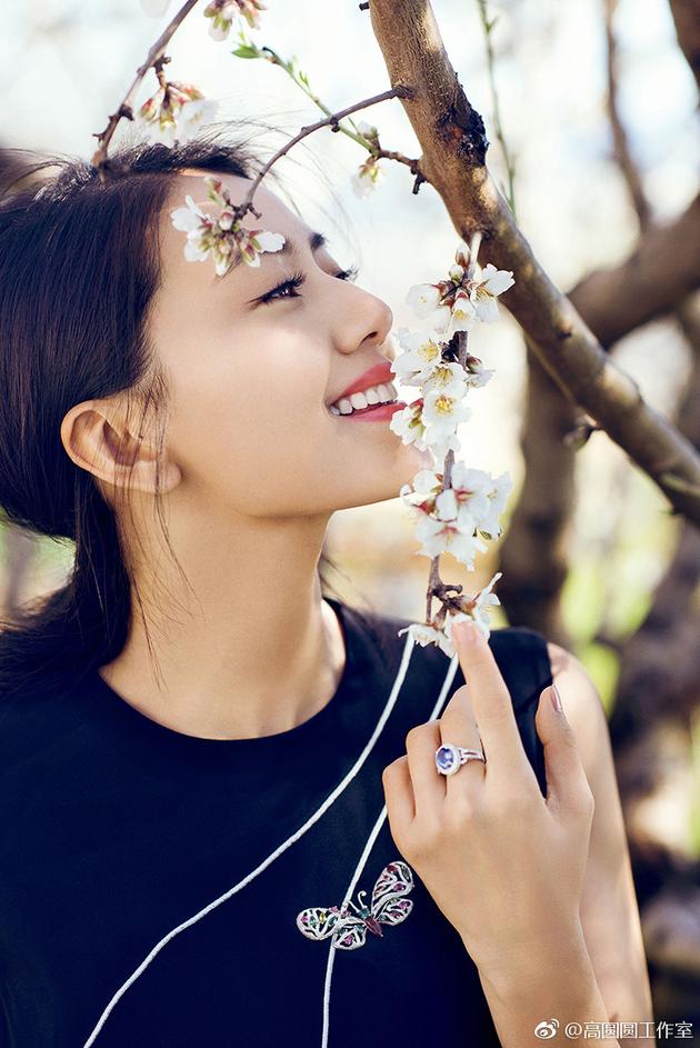 这样的美很稀缺!高圆圆站树下闻花香露标准式微笑