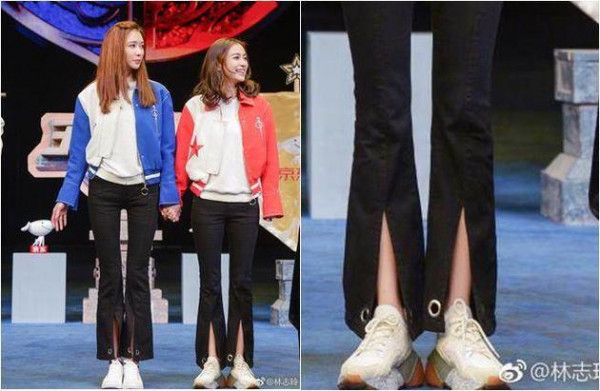 林志玲最近和Baby上综艺节目分成两队,更带领一群小鲜肉参加对抗赛,她更大赞对手是‘可爱的Baby队’,也贴出两人在节目上的合照,除了颜值都很高之外,眼尖网友发现Baby脚踩的一双超高厚底运动鞋,被调侃是要这样和志玲姐姐比拼,超级逗趣!而林志玲在节目上更换上性感的神射手装扮,冻龄模样和Baby不相上下,又一次被赞是真女神。